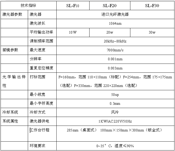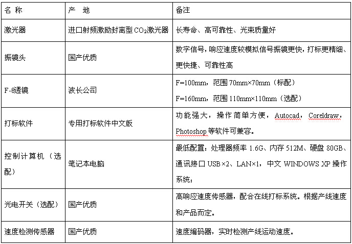 采用國際進口光纖激光器,同時以進口光學器件配合優良控制板卡的專業激光標識設備,該系列產品具有光束模式好、系統穩定可靠、光學封裝嚴密等優點。該設備能夠進行點陣、矢量的各種單線字體打碼,可打印字母、數字、漢字、圖標、符號、一維條碼、二維條碼、日期時間、流水號、隨機號、實時可變標識以及其他文字。